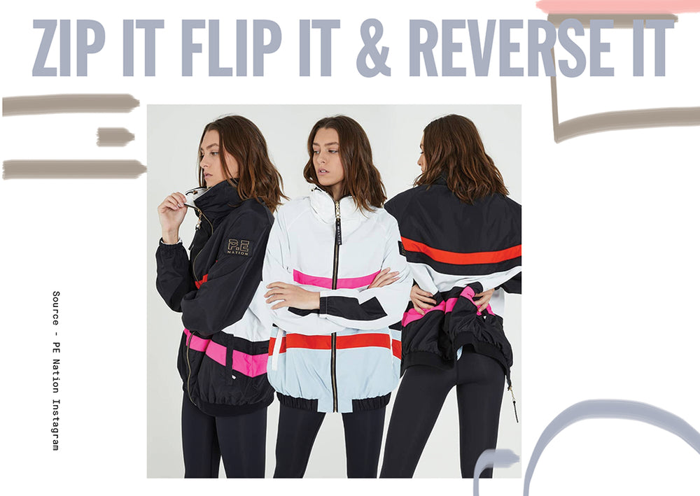 We have also got a few of our fave new PE Nation must-haves for this season. Because as everybody who’s anybody knows if Pip Edwards says it's too cool for school then it belongs as a staple in our workout wardrobes, like yesterday! Also there’s nothing more retro than a reversible parachute material bomber jacket so she was pretty much guaranteed gold on The X Cartel retro podium!